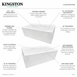 Aqua Eden VTAM6032R21TS 60-Inch Acrylic Alcove Tub With Right Hand Drain Hole, White