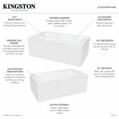 Aqua Eden VCTAP603015R 60-Inch Cast Iron Alcove Tub With Right Hand Drain Hole, White