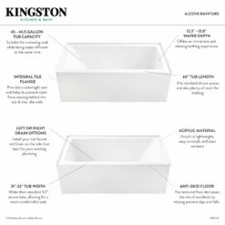 Aqua Eden VTAP6030R22TS 60-Inch Acrylic Alcove Tub With Right Hand Drain Hole, White