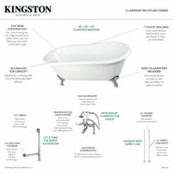 Aqua Eden KCT3D543019C8 54-Inch Cast Iron Roll Top Clawfoot Tub Combo With Faucet And Supply Lines, White/Brushed Nickel