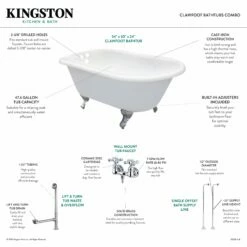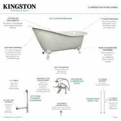 Aqua Eden KCT3D543019C1 54-Inch Cast Iron Roll Top Clawfoot Tub Combo With Faucet And Supply Lines, White/Polished Chrome