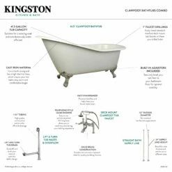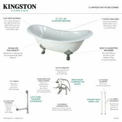 Aqua Eden KCT3D543019C8 54-Inch Cast Iron Roll Top Clawfoot Tub Combo With Faucet And Supply Lines, White/Brushed Nickel