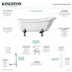 Aqua Eden KVTDE692823C1 67-Inch Acrylic Single Slipper Clawfoot Tub Combo With Faucet And Supply Lines, White/Polished Chrome