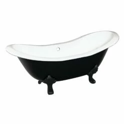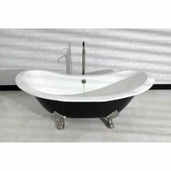 Aqua Eden VBTND7231NC8 72-Inch Cast Iron Double Slipper Clawfoot Tub (No Faucet Drillings), Black/White/Brushed Nickel