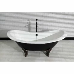 Aqua Eden VBTND7231NC5 72-Inch Cast Iron Double Slipper Clawfoot Tub (No Faucet Drillings), Black/White/Oil Rubbed Bronze
