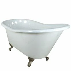 Aqua Eden VCTND6030NT8 60-Inch Cast Iron Single Slipper Clawfoot Tub (No Faucet Drillings), White/Brushed Nickel