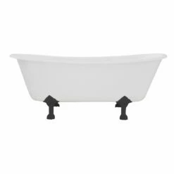 Aqua Eden VCTND6728NH0 67-Inch Cast Iron Double Slipper Clawfoot Tub (No Faucet Drillings), White/Matte Black