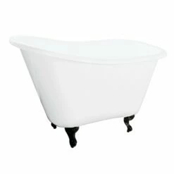 Tazatina VCTND5130NT0 51-Inch Cast Iron Single Slipper Clawfoot Tub (No Faucet Drillings), White/Matte Black