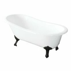 Tazatina VCTND5431B5 54-Inch Cast Iron Single Slipper Clawfoot Tub (No Faucet Drillings), White/Oil Rubbed Bronze