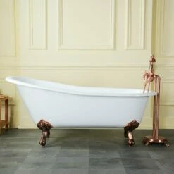 Tazatina VCTND5431B6 54-Inch Cast Iron Single Slipper Clawfoot Tub (No Faucet Drillings), White/Naples Bronze