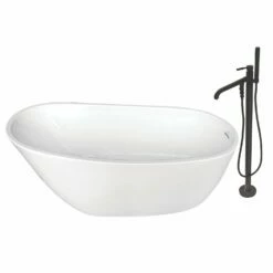 Aqua Eden VTDE593023 59-Inch Acrylic Freestanding Tub With Drain, Glossy White