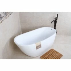 Aqua Eden VTRS542827 54-Inch Acrylic Single Slipper Freestanding Tub With Drain, White