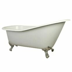 Aqua Eden NHVCT7D653129B8 62-Inch Cast Iron Single Slipper Clawfoot Tub With 7-Inch Faucet Drillings, White/Brushed Nickel