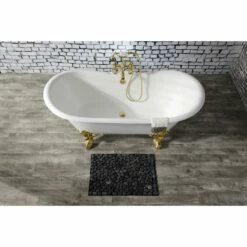 Aqua Eden VCT7DS6731NL2 67-Inch Cast Iron Double Slipper Clawfoot Tub With 7-Inch Faucet Drillings, White/Polished Brass