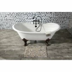 Aqua Eden VCT7DS6130NC5 61-Inch Cast Iron Double Slipper Clawfoot Tub With 7-Inch Faucet Drillings, White/Oil Rubbed Bronze
