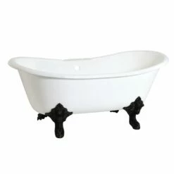 Aqua Eden VCT7DS6731NL5 67-Inch Cast Iron Double Slipper Clawfoot Tub With 7-Inch Faucet Drillings, White/Oil Rubbed Bronze