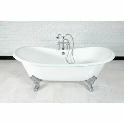 Aqua Eden VCT7DS6731NL1 67-Inch Cast Iron Double Slipper Clawfoot Tub With 7-Inch Faucet Drillings, White/Polished Chrome