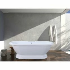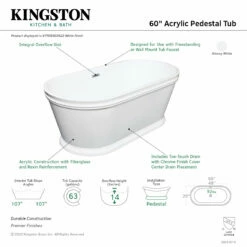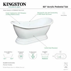 Arcticstone VRTDE593023 59-Inch Double Ended Solid Surface Pedestal Tub With Drain, Glossy White/Matte White