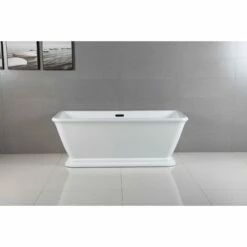 Aqua Eden VTSQ663124 66-Inch Acrylic Double Ended Pedestal Tub With Square Overflow And Pop-Up Drain, White