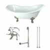 Aqua Eden KCT3D543019C8 54-Inch Cast Iron Roll Top Clawfoot Tub Combo with Faucet and Supply Lines, White/Brushed Nickel
