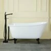 Surround yourself with the perfumed aroma of your favorite candle, grab your favorite piece of literature, and soak all of the stresses of the day away with the help of the convenient, all-inclusive clawfoot tub combo. Since the late 19th century, the claw foot tub has stood prominent among bathroom fixtures for its outstanding grandeur. The Aqua Eden 54-inch cast iron clawfoot tub with faucet, drain and supply lines combo will wholly beautify your home for years to come thanks to its durable and heavy cast iron construction. Elegantly crafted clawfoot tub feet are included to further elevate your home’s traditional eminence. Includes tub, faucet, drain and supply lines. Aside from its feet, this bathtub is enameled in glossy white for a classic look, exceptional durability, and easy care and maintenance for years to come.