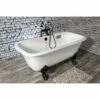 Surround yourself with the perfumed aroma of your favorite candle, grab your favorite piece of literature, and soak all of the stresses of the day away with the help of the convenient, all-inclusive clawfoot tub combo. Since the late 19th century, the claw foot tub has stood prominent among bathroom fixtures for its outstanding grandeur. The Aqua Eden 66-inch cast iron clawfoot tub with faucet, drain and supply lines combo will wholly beautify your home for years to come thanks to its durable and heavy cast iron construction. Elegantly crafted clawfoot tub feet are included to further elevate your home’s traditional eminence. Includes tub, faucet, drain and supply lines. Aside from its feet, this bathtub is enameled in glossy white for a classic look, exceptional durability, and easy care and maintenance for years to come.