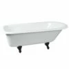 Surround yourself with the perfumed aroma of your favorite candle, grab your favorite piece of literature, and soak all of the stresses of the day away with the all-encompassing embrace of one of Kingston Brass’ finest products, the clawfoot tub. Since the late 19th century, the claw foot tub has stood prominent among bathroom fixtures for its outstanding grandeur. The Aqua Eden 61-inch cast iron slipper clawfoot tub with 7-inch faucet drillings will wholly beautify your home for years to come thanks to its durable and heavy cast iron construction. Elegantly crafted clawfoot tub feet are included to further elevate your home’s traditional eminence. Aside from its feet, this bathtub is enameled in glossy white for a classic look, exceptional durability, and easy care and maintenance for years to come.