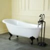 Surround yourself with the perfumed aroma of your favorite candle, grab your favorite piece of literature, and soak all of the stresses of the day away with the all-encompassing embrace of one of Kingston Brass’ finest products, the clawfoot tub. Since the late 19th century, the claw foot tub has stood prominent among bathroom fixtures for its outstanding grandeur. The Aqua Eden 61-inch cast iron slipper clawfoot tub will wholly beautify your home for years to come thanks to its durable and heavy cast iron construction. Elegantly crafted clawfoot tub feet are included to further elevate your home’s traditional eminence. Aside from its feet, this bathtub is enameled in glossy white for a classic look, exceptional durability, and easy care and maintenance for years to come.