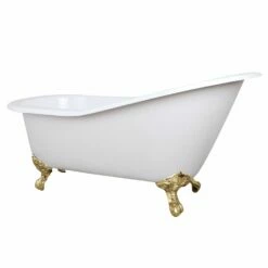 Aqua Eden NHVCTND653129B2 61-Inch Cast Iron Single Slipper Clawfoot Tub (No Faucet Drillings), White/Polished Brass