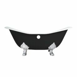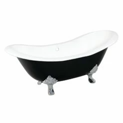 Surround yourself with the perfumed aroma of your favorite candle, grab your favorite piece of literature, and soak all of the stresses of the day away with the all-encompassing embrace of one of Kingston Brass’ finest products, the clawfoot tub. Since the late 19th century, the claw foot tub has stood prominent among bathroom fixtures for its outstanding grandeur. The Kingston Brass Aqua Eden black 72-inch cast iron double slipper clawfoot tub (no faucet drillings) will wholly beautify your home for years to come thanks to its durable and heavy cast iron construction. Elegantly crafted clawfoot tub feet are included to further elevate your home’s traditional eminence. This bathtub features a striking and bold matte black exterior, a classic, durable, easy to clean glossy white enameled interior and rim, and of course finish matched feet.