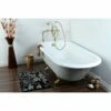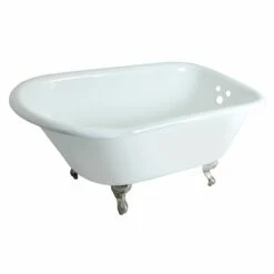 Surround yourself with the perfumed aroma of your favorite candle, grab your favorite piece of literature, and soak all of the stresses of the day away with the all-encompassing embrace of one of Kingston Brass’ finest products, the clawfoot tub. Since the late 19th century, the claw foot tub has stood prominent among bathroom fixtures for its outstanding grandeur. The Kingston Brass Aqua Eden 48-inch cast iron roll top clawfoot tub with 3-3/8 inch wall drillings will wholly beautify your home for years to come thanks to its durable and heavy cast iron construction. Elegantly crafted clawfoot tub feet are included to further elevate your home’s traditional eminence. Aside from its feet, this bathtub is enameled in glossy white for a classic look, exceptional durability, and easy care and maintenance for years to come.