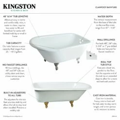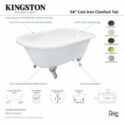 Surround yourself with the perfumed aroma of your favorite candle, grab your favorite piece of literature, and soak all of the stresses of the day away with the all-encompassing embrace of one of Kingston Brass’ finest products, the clawfoot tub. Since the late 19th century, the claw foot tub has stood prominent among bathroom fixtures for its outstanding grandeur. The Aqua Eden 54-inch cast iron roll top clawfoot tub with 3-3/8-inch wall drillings will wholly beautify your home for years to come thanks to its durable and heavy cast iron construction. Elegantly crafted clawfoot tub feet are included to further elevate your home’s traditional eminence. Aside from its feet, this bathtub is enameled in glossy white for a classic look, exceptional durability, and easy care and maintenance for years to come.