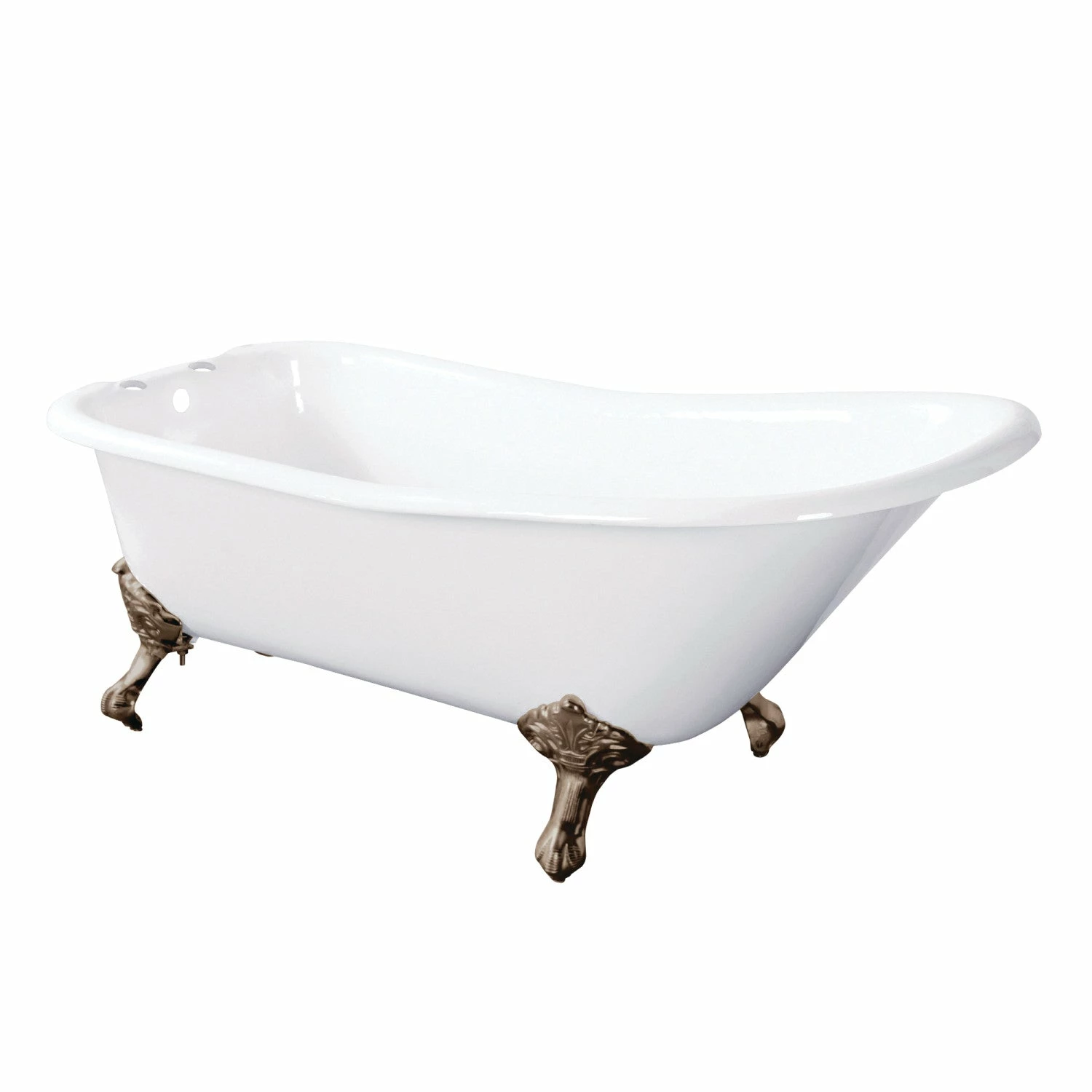 Aqua Eden VCT7D6630NF8 67-Inch Cast Iron Single Slipper Clawfoot Tub with 7-Inch Faucet Drillings, White/Brushed Nickel