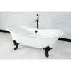 Surround yourself with the perfumed aroma of your favorite candle, grab your favorite piece of literature, and soak all of the stresses of the day away with the all-encompassing embrace of one of Kingston Brass’ finest products, the clawfoot tub. Since the late 19th century, the claw foot tub has stood prominent among bathroom fixtures for its outstanding grandeur. The Kingston Brass Aqua Eden 67-inch cast iron single slipper clawfoot tub with 7-inch faucet drillings will wholly beautify your home for years to come thanks to its durable and heavy cast iron construction. Elegantly crafted clawfoot tub feet are included to further elevate your home’s traditional eminence. Aside from its feet, this bathtub is enameled in glossy white for a classic look, exceptional durability, and easy care and maintenance for years to come.