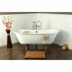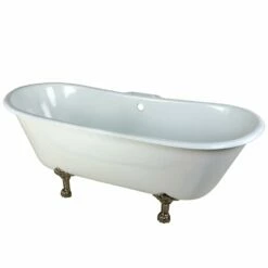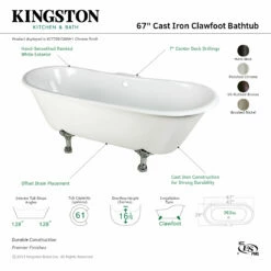 Surround yourself with the perfumed aroma of your favorite candle, grab your favorite piece of literature, and soak all of the stresses of the day away with the all-encompassing embrace of one of Kingston Brass’ finest products, the clawfoot tub. Since the late 19th century, the claw foot tub has stood prominent among bathroom fixtures for its outstanding grandeur. The Aqua Eden 67-inch cast iron double slipper clawfoot tub with 7-inch faucet drillings will wholly beautify your home for years to come thanks to its durable and heavy cast iron construction. Elegantly crafted clawfoot tub feet are included to further elevate your home’s traditional eminence. Aside from its feet, this bathtub is enameled in glossy white for a classic look, exceptional durability, and easy care and maintenance for years to come.