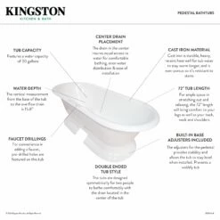 Incorporate the regal beauty of a Kingston Brass pedestal tub for years and years of luxury baths suitable for royalty. Pedestal tubs are generally categorized as the contemporary descendant of the classic clawfoot tub. However, unlike the clawfoot tub, pedestal tubs rely on a solid base ring bordering the bottom perimeter to support and raise it off the floor, giving it a one-of-a-kind personality. The Aqua Eden 72-inch cast iron Double Ended Pedestal Tub with 7-Inch Faucet Drillings will wholly beautify your home for years to come thanks to its durable and heavy cast iron construction. This bathtub is enameled in glossy white for a classic look, exceptional durability, and easy care and maintenance for years to come.