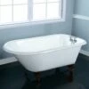 Surround yourself with the perfumed aroma of your favorite candle, grab your favorite piece of literature, and soak all of the stresses of the day away with the all-encompassing embrace of one of Kingston Brass’ finest products, the clawfoot tub. Since the late 19th century, the claw foot tub has stood prominent among bathroom fixtures for its outstanding grandeur. The Kingston Brass Aqua Eden 61-inch cast iron double slipper clawfoot tub with 7-inch faucet drillings will wholly beautify your home for years to come thanks to its durable and heavy cast iron construction. Elegantly crafted clawfoot tub feet are included to further elevate your home’s traditional eminence. Aside from its feet, this bathtub is enameled in glossy white for a classic look, exceptional durability, and easy care and maintenance for years to come.