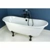 Surround yourself with the perfumed aroma of your favorite candle, grab your favorite piece of literature, and soak all of the stresses of the day away with the all-encompassing embrace of one of Kingston Brass’ finest products, the clawfoot tub. Since the late 19th century, the claw foot tub has stood prominent among bathroom fixtures for its outstanding grandeur. The Kingston Brass Aqua Eden 61-inch cast iron double slipper clawfoot tub with 7-inch faucet drillings will wholly beautify your home for years to come thanks to its durable and heavy cast iron construction. Elegantly crafted clawfoot tub feet are included to further elevate your home’s traditional eminence. Aside from its feet, this bathtub is enameled in glossy white for a classic look, exceptional durability, and easy care and maintenance for years to come.