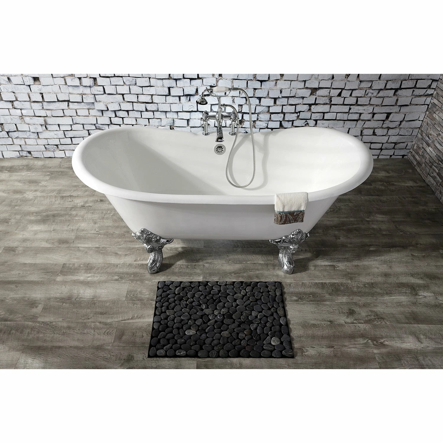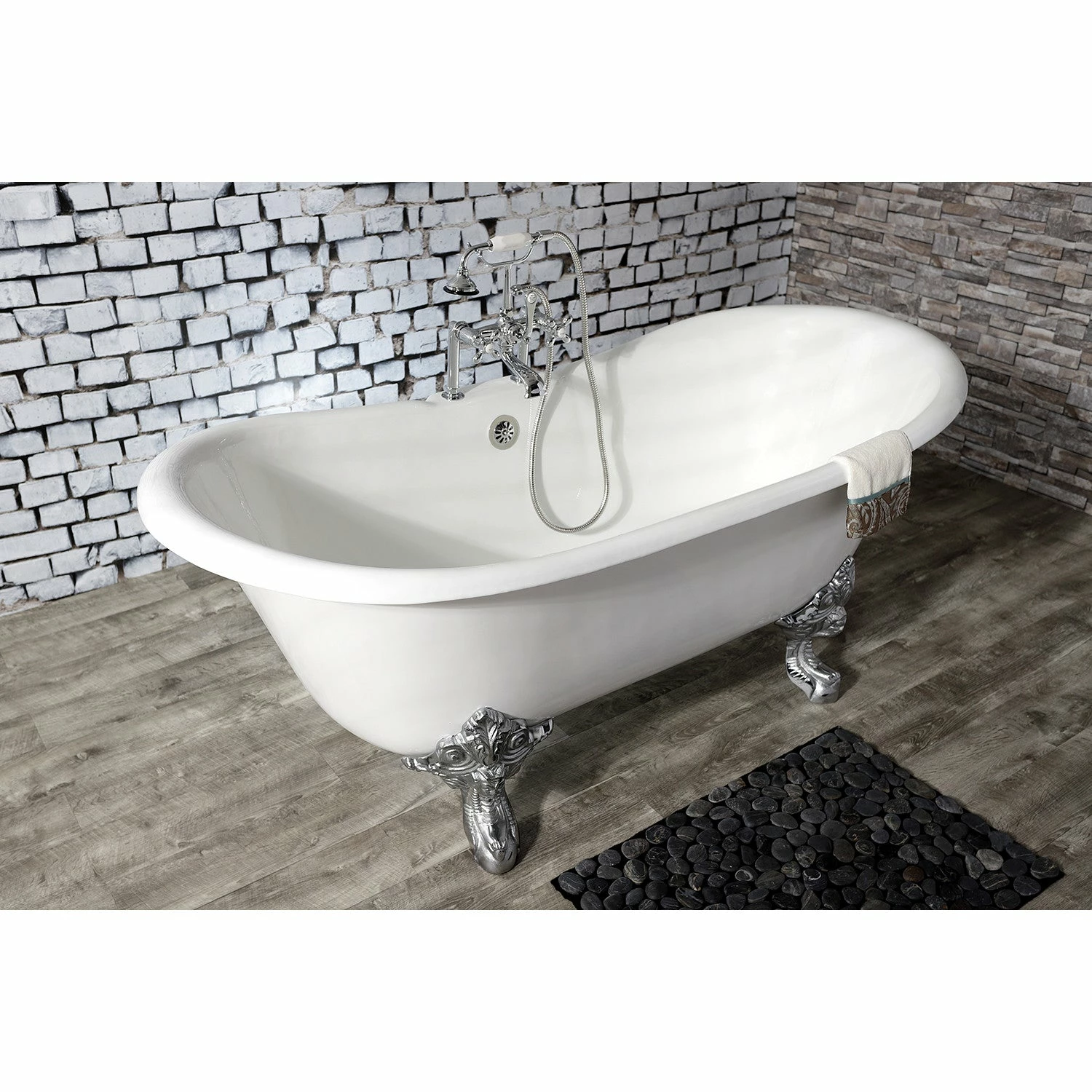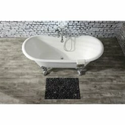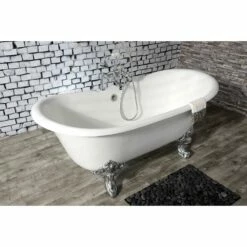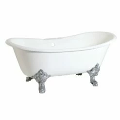 Surround yourself with the perfumed aroma of your favorite candle, grab your favorite piece of literature, and soak all of the stresses of the day away with the all-encompassing embrace of one of Kingston Brass’ finest products, the clawfoot tub. Since the late 19th century, the claw foot tub has stood prominent among bathroom fixtures for its outstanding grandeur. The Kingston Brass Aqua Eden 67-inch cast iron double slipper clawfoot tub with 7-inch faucet drillings will wholly beautify your home for years to come thanks to its durable and heavy cast iron construction. Elegantly crafted clawfoot tub feet are included to further elevate your home’s traditional eminence. Aside from its feet, this bathtub is enameled in glossy white for a classic look, exceptional durability, and easy care and maintenance for years to come.