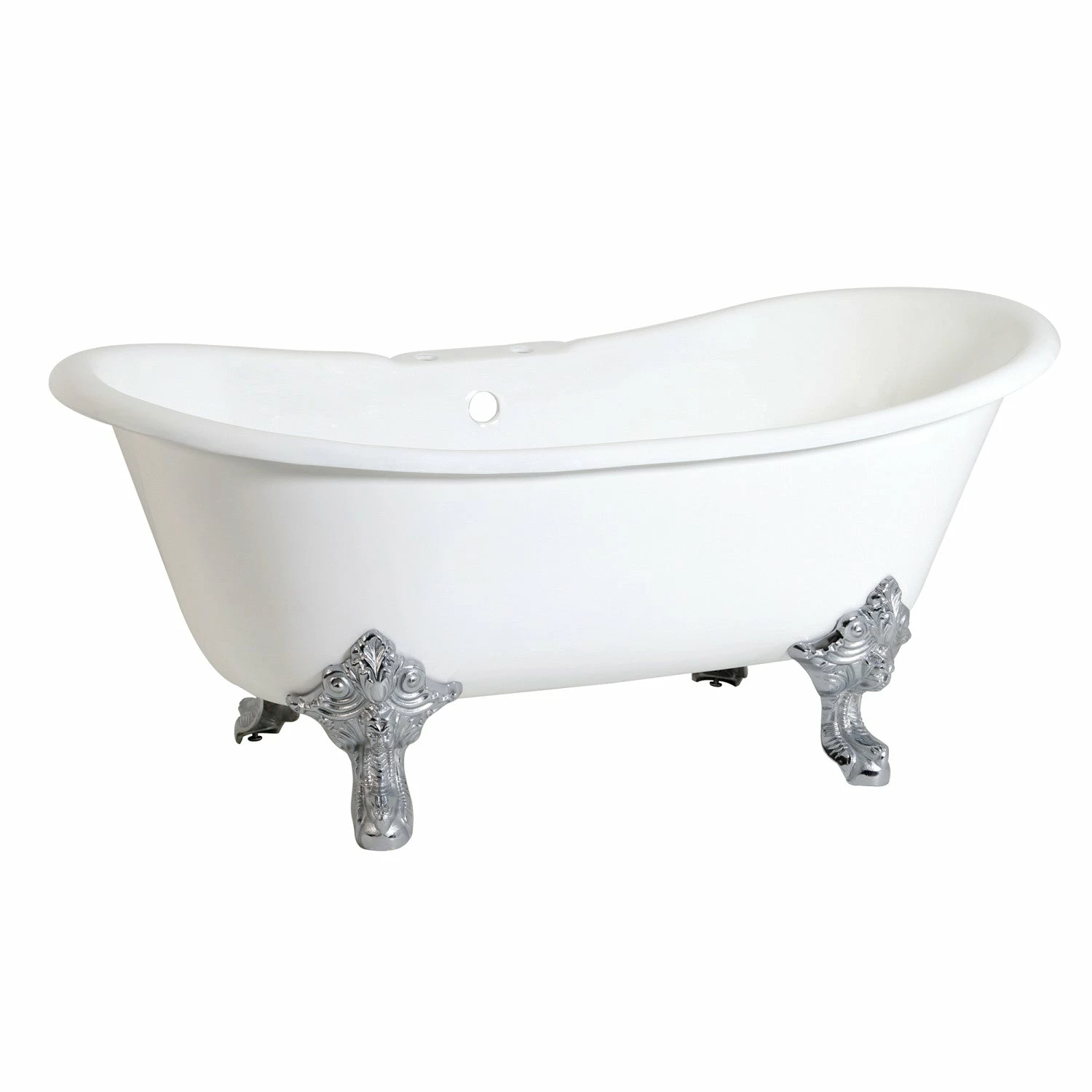 Aqua Eden VCT7DS6731NL1 67-Inch Cast Iron Double Slipper Clawfoot Tub with 7-Inch Faucet Drillings, White/Polished Chrome