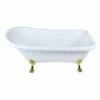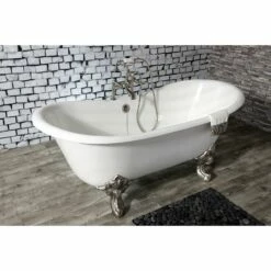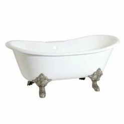 Surround yourself with the perfumed aroma of your favorite candle, grab your favorite piece of literature, and soak all of the stresses of the day away with the all-encompassing embrace of one of Kingston Brass’ finest products, the clawfoot tub. Since the late 19th century, the claw foot tub has stood prominent among bathroom fixtures for its outstanding grandeur. The Kingston Brass Aqua Eden 67-inch cast iron double slipper clawfoot tub with 7-inch faucet drillings will wholly beautify your home for years to come thanks to its durable and heavy cast iron construction. Elegantly crafted clawfoot tub feet are included to further elevate your home’s traditional eminence. Aside from its feet, this bathtub is enameled in glossy white for a classic look, exceptional durability, and easy care and maintenance for years to come.