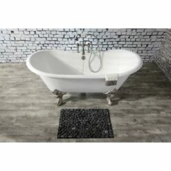 Surround yourself with the perfumed aroma of your favorite candle, grab your favorite piece of literature, and soak all of the stresses of the day away with the all-encompassing embrace of one of Kingston Brass’ finest products, the clawfoot tub. Since the late 19th century, the claw foot tub has stood prominent among bathroom fixtures for its outstanding grandeur. The Kingston Brass Aqua Eden 67-inch cast iron double slipper clawfoot tub with 7-inch faucet drillings will wholly beautify your home for years to come thanks to its durable and heavy cast iron construction. Elegantly crafted clawfoot tub feet are included to further elevate your home’s traditional eminence. Aside from its feet, this bathtub is enameled in glossy white for a classic look, exceptional durability, and easy care and maintenance for years to come.