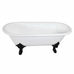 Surround yourself with the perfumed aroma of your favorite candle, grab your favorite piece of literature, and soak all of the stresses of the day away with the all-encompassing embrace of one of Kingston Brass’ finest products, the clawfoot tub. Since the late 19th century, the claw foot tub has stood prominent among bathroom fixtures for its outstanding grandeur. The Kingston Brass Aqua Eden 72-inch cast iron double ended clawfoot tub (no faucet drillings) will wholly beautify your home for years to come thanks to its durable and heavy cast iron construction. Elegantly crafted clawfoot tub feet are included to further elevate your home’s traditional eminence. Aside from its feet, this bathtub is enameled in glossy white for a classic look, exceptional durability, and easy care and maintenance for years to come.