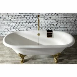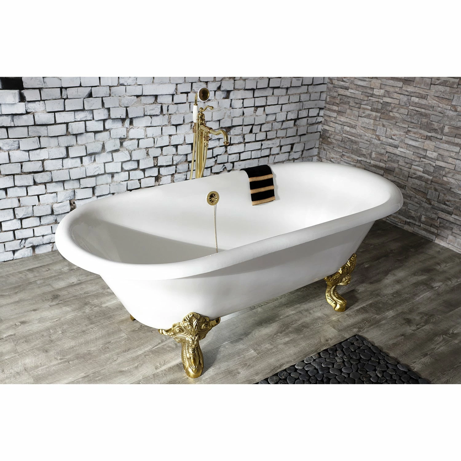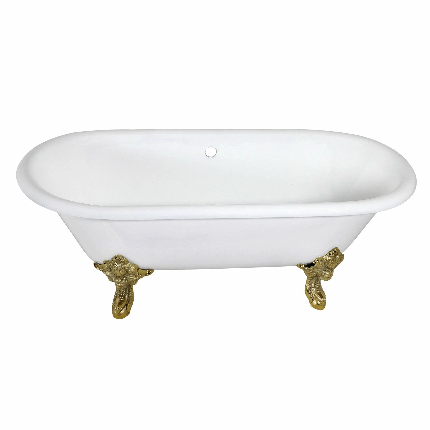 Aqua Eden VCTDE7232NL2 72-Inch Cast Iron Double Ended Clawfoot Tub (No Faucet Drillings), White/Polished Brass