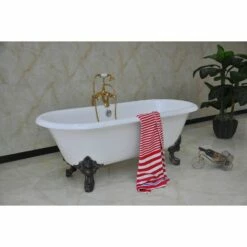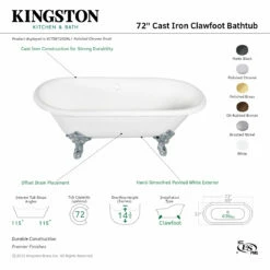 Surround yourself with the perfumed aroma of your favorite candle, grab your favorite piece of literature, and soak all of the stresses of the day away with the all-encompassing embrace of one of Kingston Brass’ finest products, the clawfoot tub. Since the late 19th century, the claw foot tub has stood prominent among bathroom fixtures for its outstanding grandeur. The Kingston Brass Aqua Eden 72-inch cast iron double ended clawfoot tub (no faucet drillings) will wholly beautify your home for years to come thanks to its durable and heavy cast iron construction. Elegantly crafted clawfoot tub feet are included to further elevate your home’s traditional eminence. Aside from its feet, this bathtub is enameled in glossy white for a classic look, exceptional durability, and easy care and maintenance for years to come.
