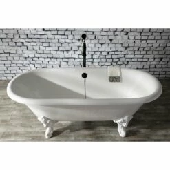 Surround yourself with the perfumed aroma of your favorite candle, grab your favorite piece of literature, and soak all of the stresses of the day away with the all-encompassing embrace of one of Kingston Brass’ finest products, the clawfoot tub. Since the late 19th century, the claw foot tub has stood prominent among bathroom fixtures for its outstanding grandeur. The Kingston Brass Aqua Eden 72-inch cast iron double ended clawfoot tub (no faucet drillings) will wholly beautify your home for years to come thanks to its durable and heavy cast iron construction. Elegantly crafted clawfoot tub feet are included to further elevate your home’s traditional eminence. This bathtub is enameled in glossy white for a classic look, exceptional durability, and easy care and maintenance for years to come, and its feet are a glossy white to match.