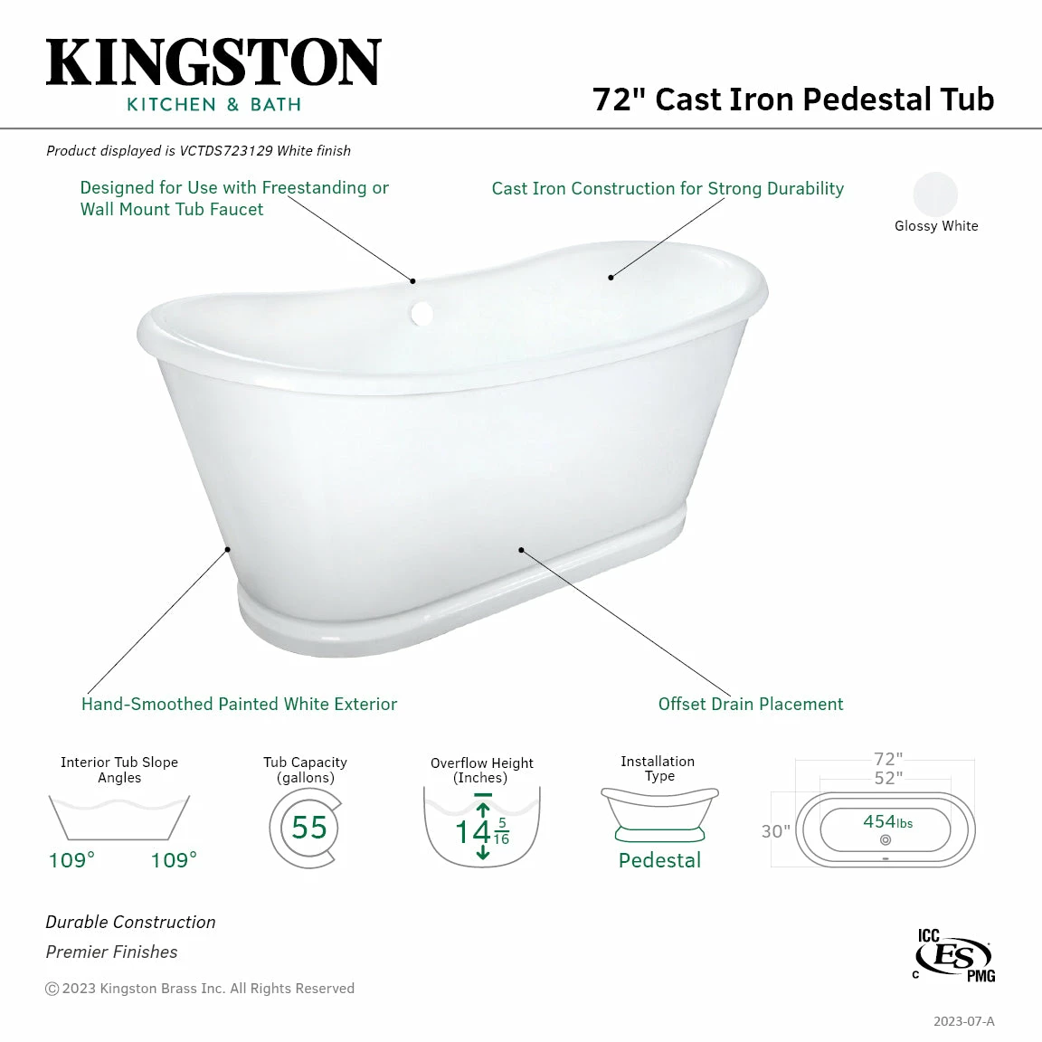 Aqua Eden VCTDS723129 72-Inch Double Slipper Cast Iron Skirted Pedestal Tub, White