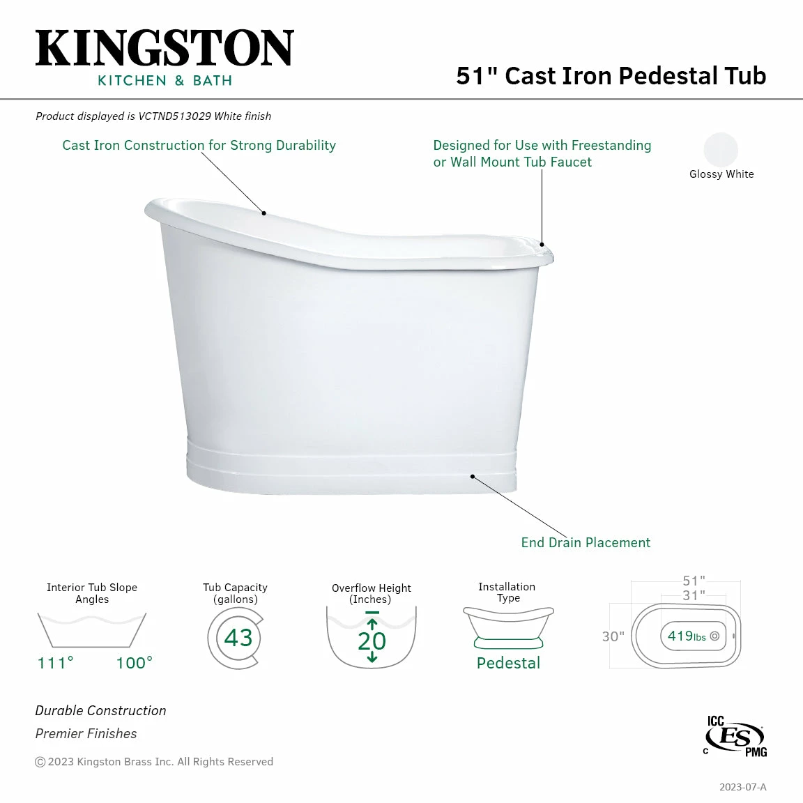 Aqua Eden VCTND513029 51-Inch Single Slipper Cast Iron Skirted Pedestal Tub, White