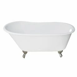 Surround yourself with the perfumed aroma of your favorite candle, grab your favorite piece of literature, and soak all of the stresses of the day away with the all-encompassing embrace of one of Kingston Brass’ finest products, the clawfoot tub. Since the late 19th century, the claw foot tub has stood prominent among bathroom fixtures for its outstanding grandeur. The Aqua Eden 53-inch cast iron slipper clawfoot tub will wholly beautify your home for years to come thanks to its durable and heavy cast iron construction. Elegantly crafted clawfoot tub feet are included to further elevate your home’s traditional eminence. Aside from its feet, this bathtub is enameled in glossy white for a classic look, exceptional durability, and easy care and maintenance for years to come.