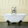 Surround yourself with the perfumed aroma of your favorite candle, grab your favorite piece of literature, and soak all of the stresses of the day away with the all-encompassing embrace of one of Kingston Brass’ finest products, the clawfoot tub. Since the late 19th century, the claw foot tub has stood prominent among bathroom fixtures for its outstanding grandeur. The Kingston Brass Aqua Eden 60-inch cast iron double ended clawfoot tub (no faucet drillings) will wholly beautify your home for years to come thanks to its durable and heavy cast iron construction. Elegantly crafted clawfoot tub feet are included to further elevate your home’s traditional eminence. Aside from its feet, this bathtub is enameled in glossy white for a classic look, exceptional durability, and easy care and maintenance for years to come.